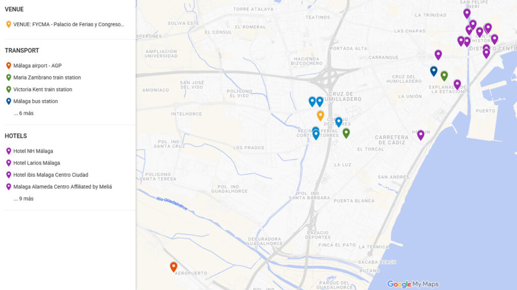 The venue benefits from excellent connectivity, being located close to Málaga airport, the high-speed train station, and the city centre. With multiple transport options including public buses, taxis, and private transfers, visitors will have a smooth and comfortable arrival and departure experience.